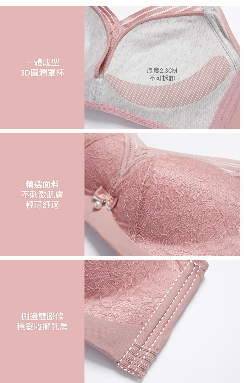 一體成型3D圓潤罩杯