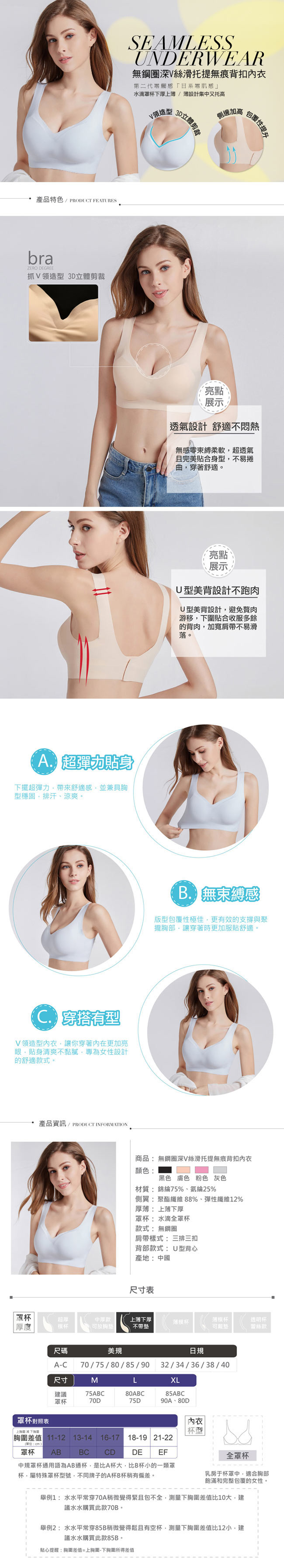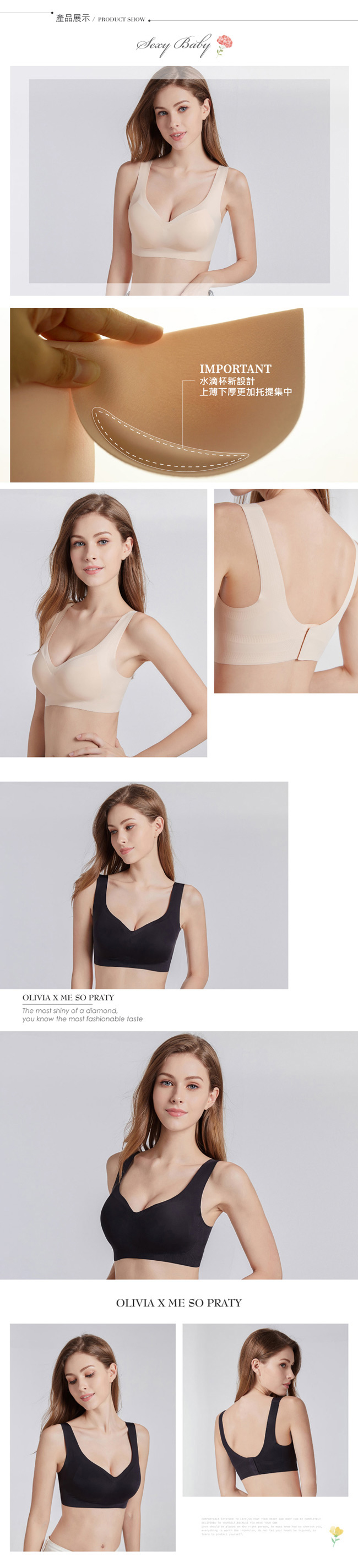 水滴杯厚底新設計,更加托提集中側邊加高包覆性更好隱藏式背扣設計加寬肩帶設計,減壓舒適精細貼合、優質絲滑面料