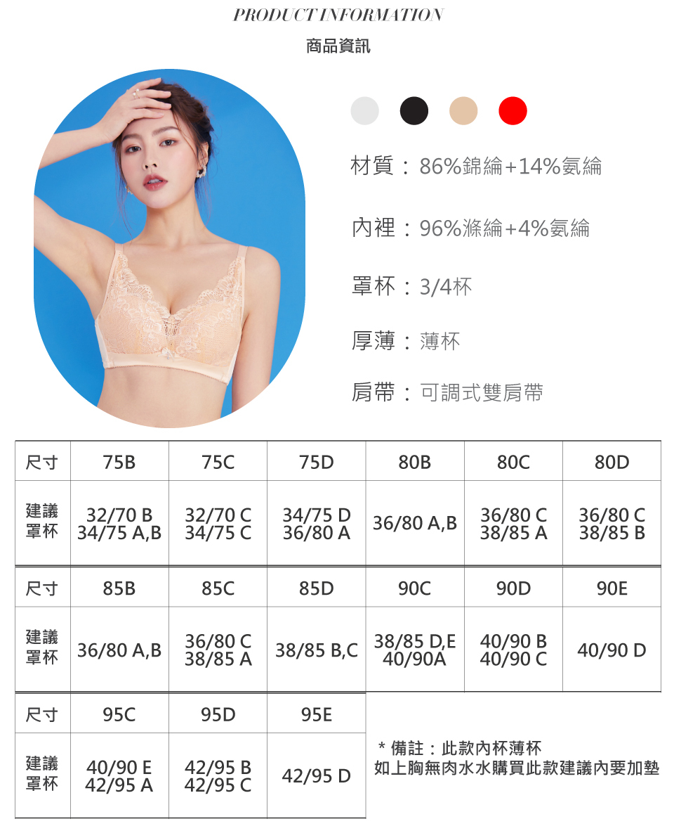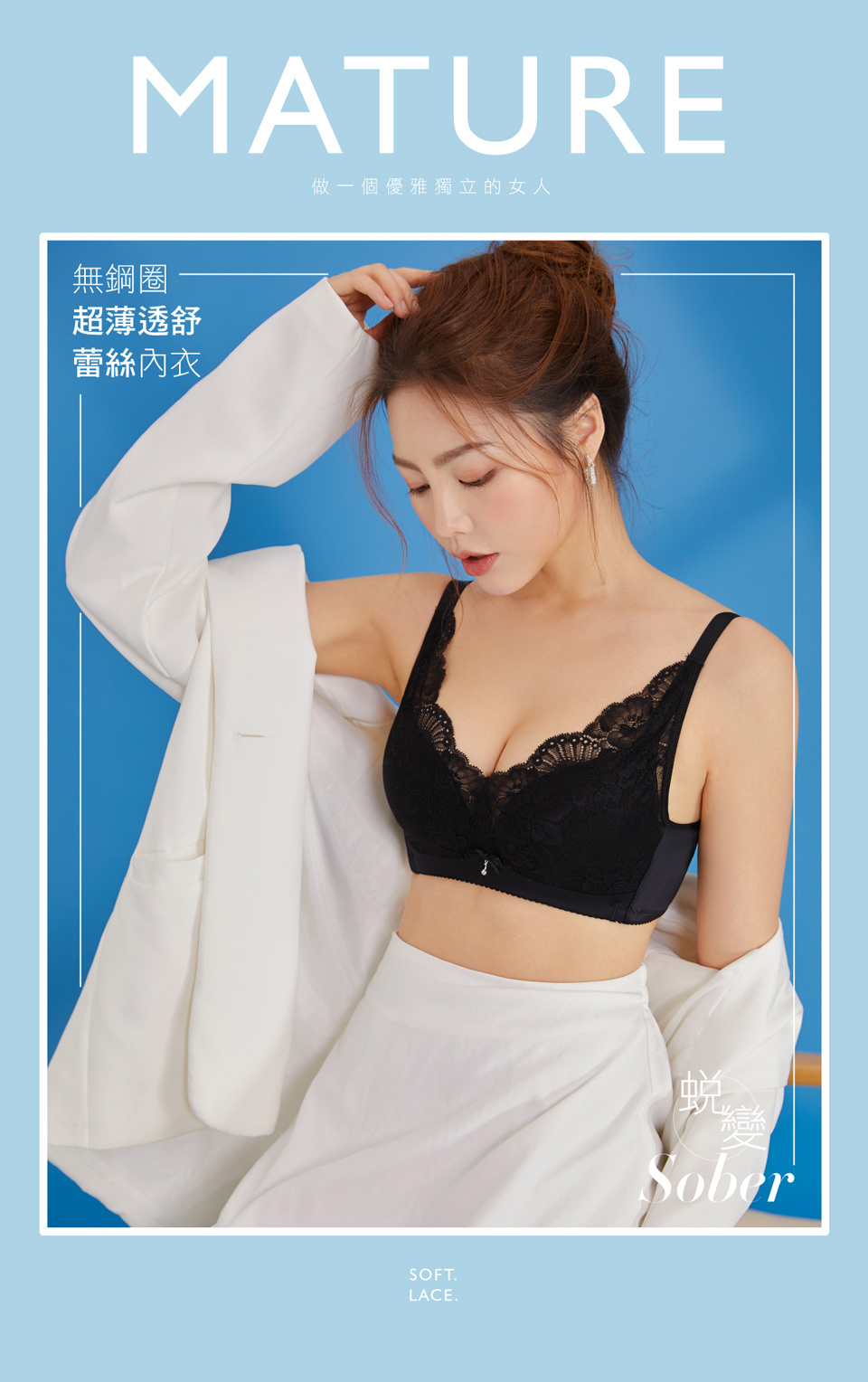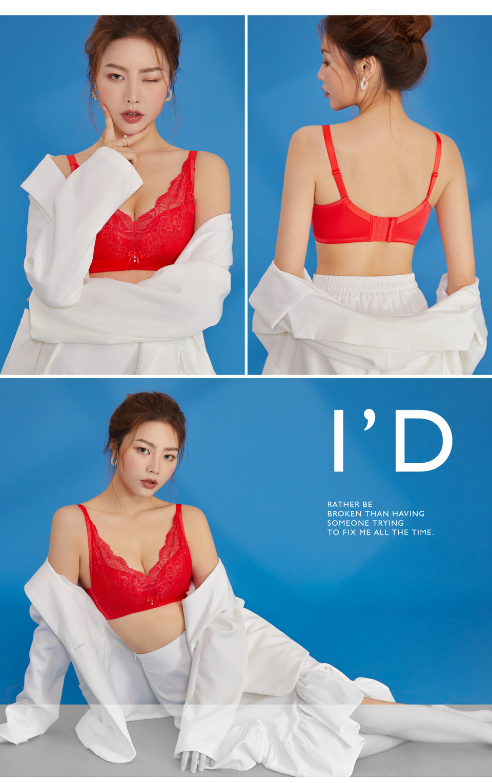 無鋼圈超薄透舒蕾絲內衣-紅色
