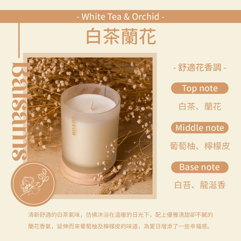 Balsams白森氏香氛工藝蠟燭200g-白茶&蘭花
