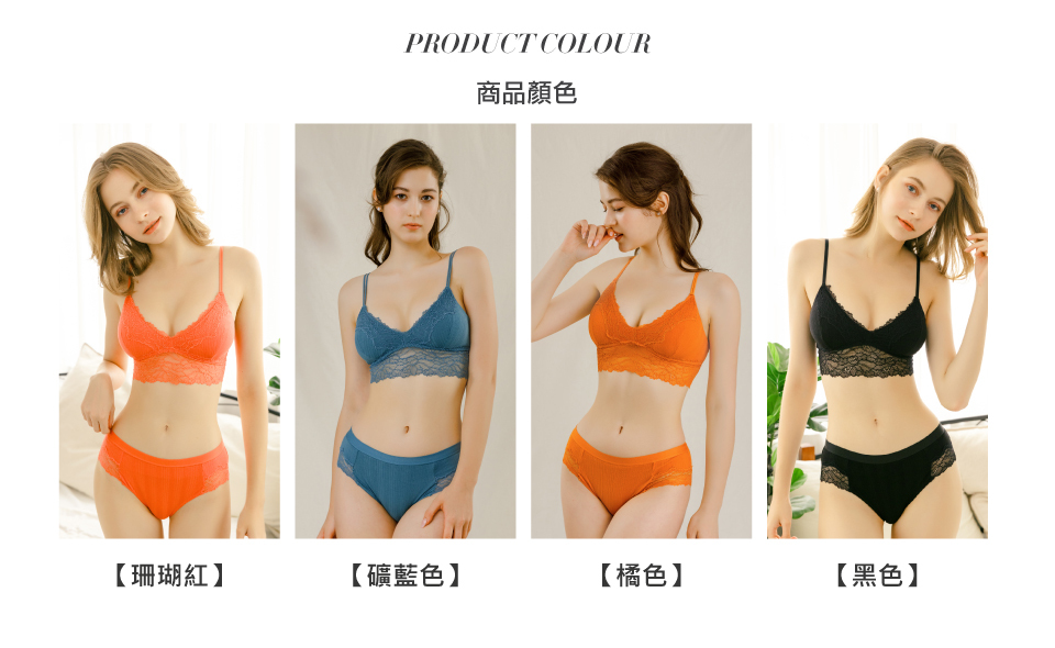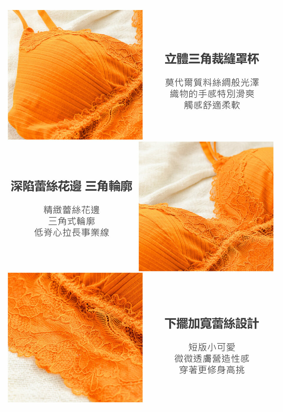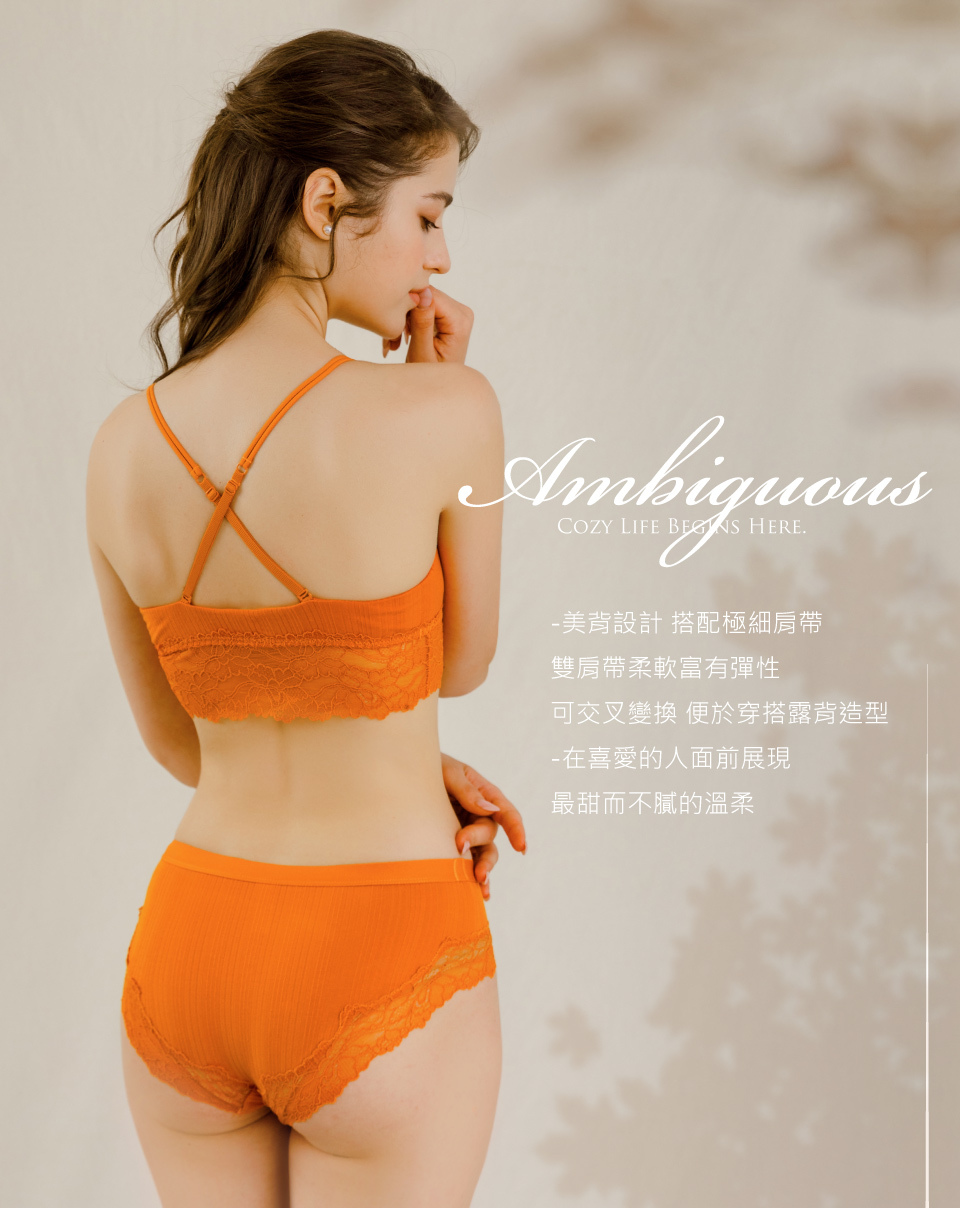 Olivia【曖昧系列-絲絨蛋糕戀人】細肩帶蕾絲透視成套內衣褲-橘色