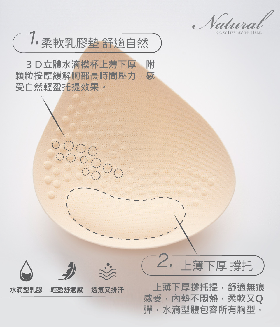 水滴型可拆卸內杯 按摩顆粒緩解胸部壓力