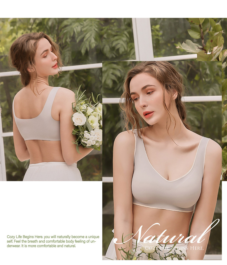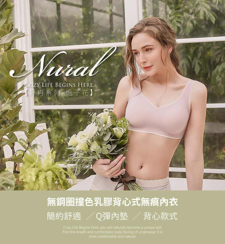 Olivia【舒冉系列-洋桔梗】無鋼圈撞色乳膠背心式無痕內衣-胭脂粉