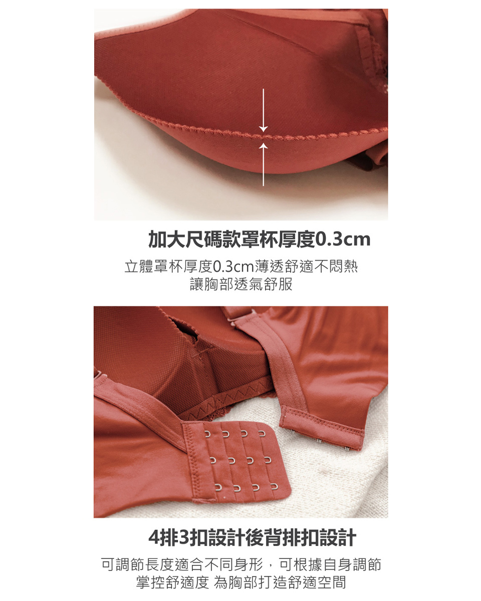 無鋼圈3D技術立體罩杯,胸部更飽滿。