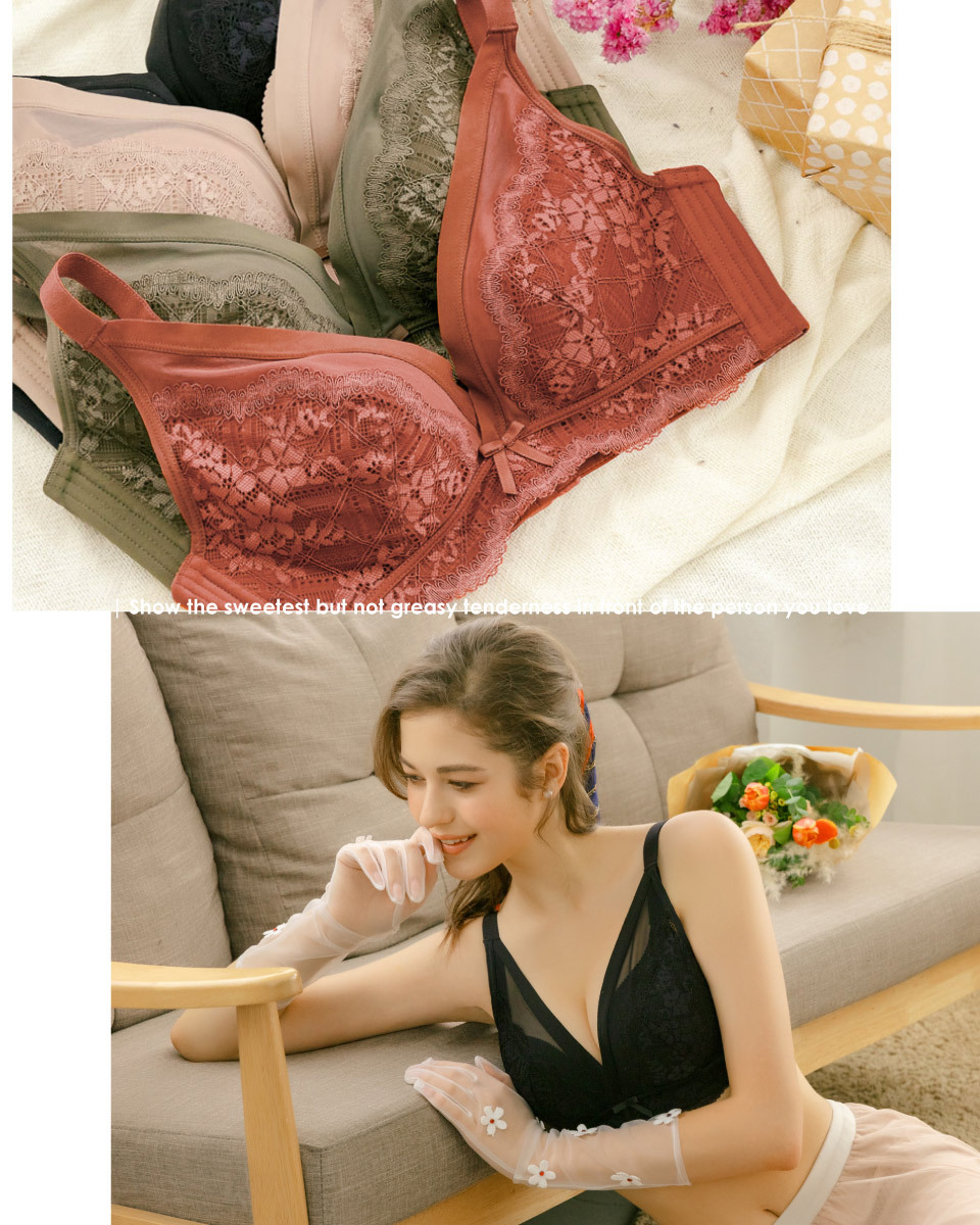 Olivia【曖昧系列-酒糖巧克力戀人】無鋼圈復古鉤花網眼滾邊內衣-墨綠(75-90、B~E)