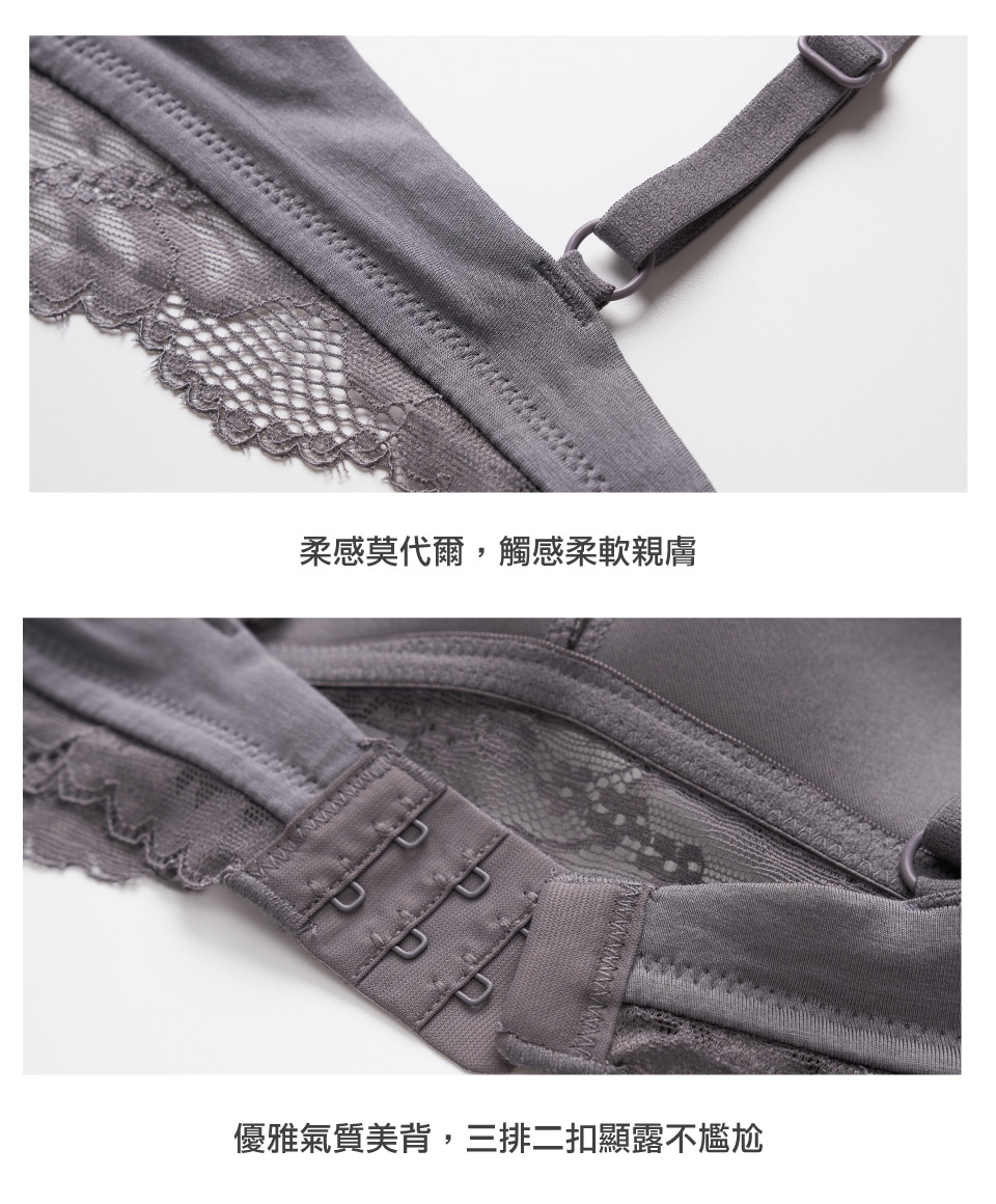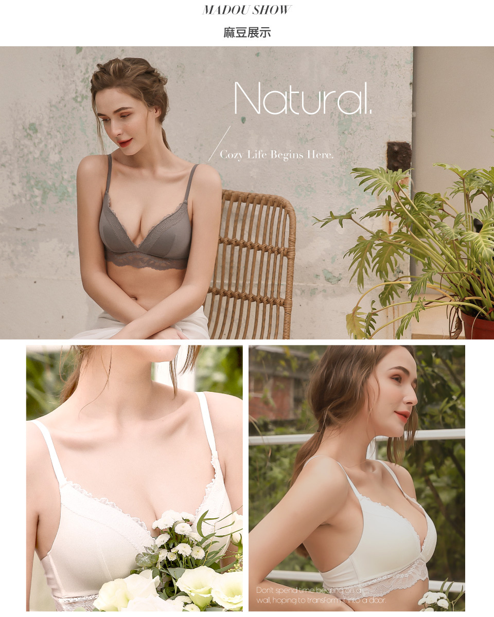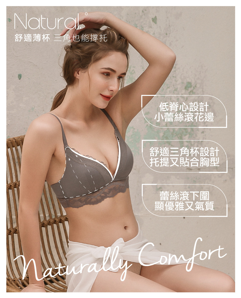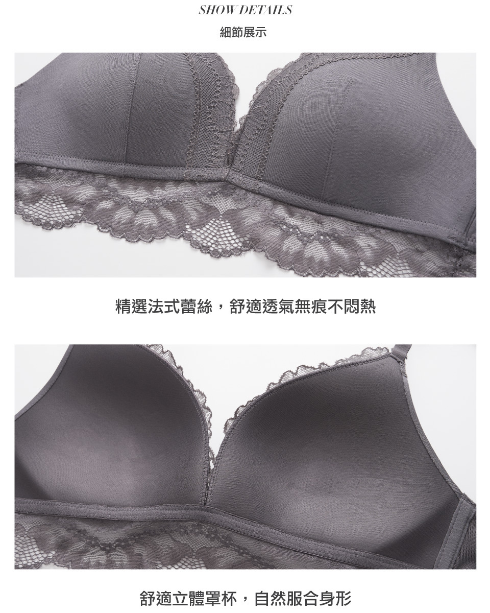 Olivia【舒冉系列-梔子花】無鋼圈法式三角杯性感蕾絲內衣-灰色(30/65-38/85、A-D)