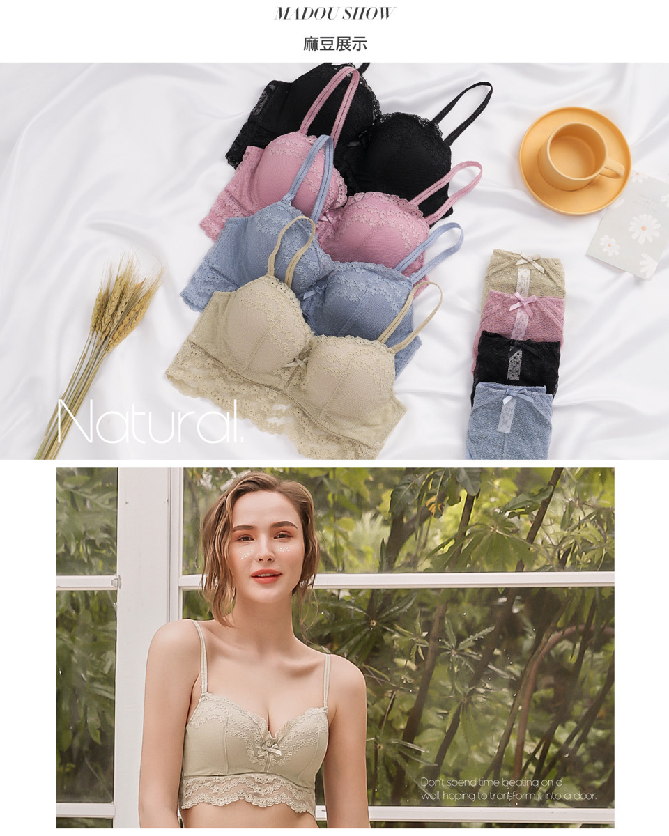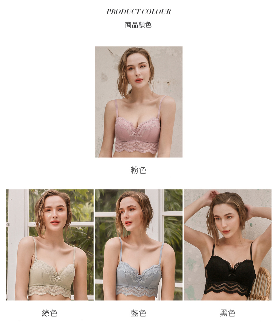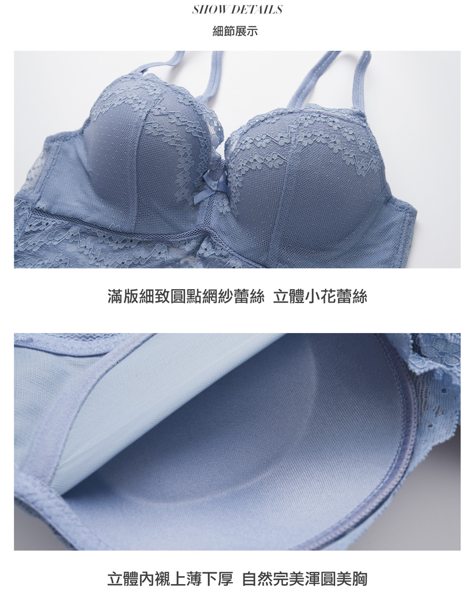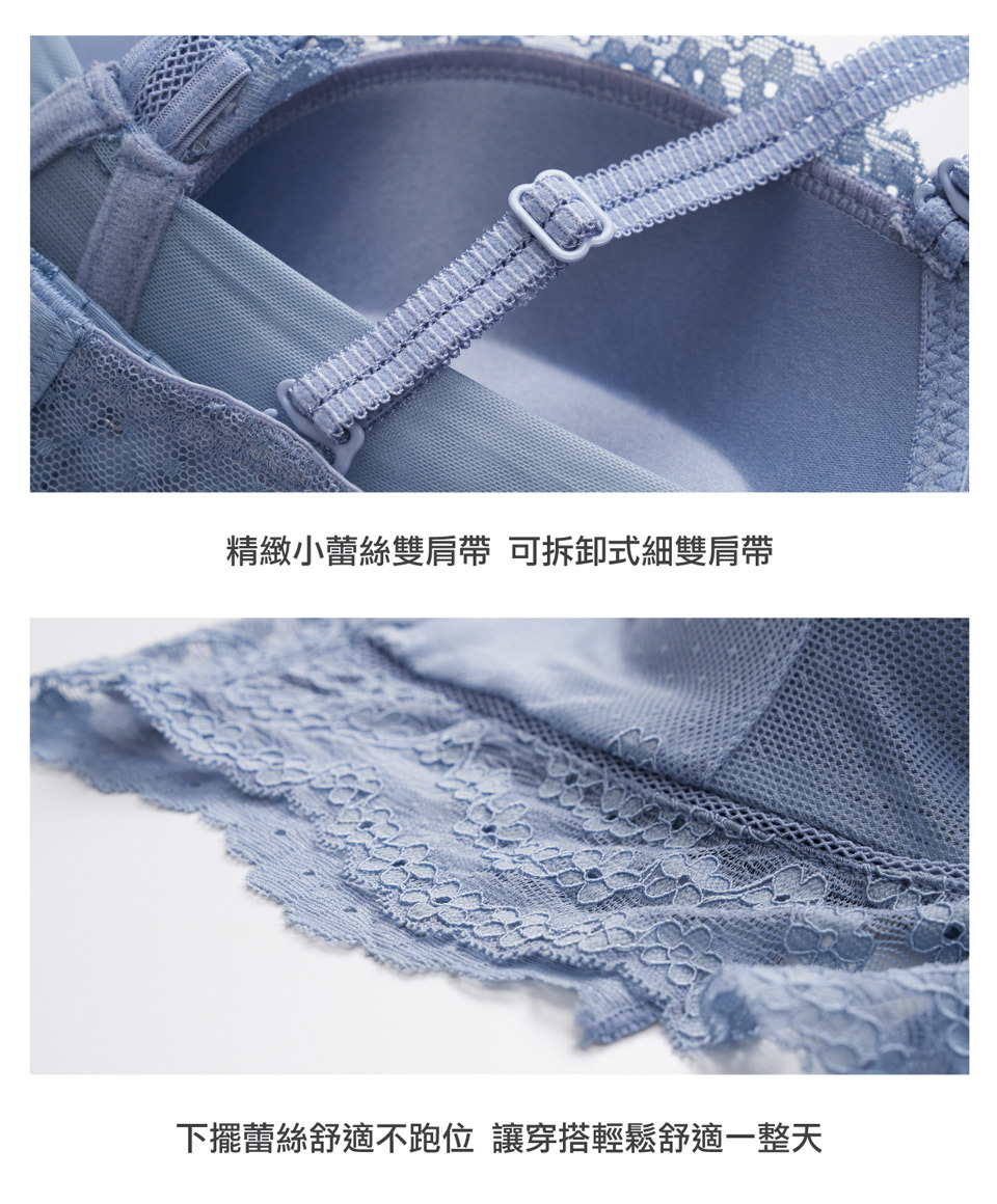 Olivia【舒冉系列-波斯頓蕨】無鋼圈蕾絲馬甲花邊內衣-藍色