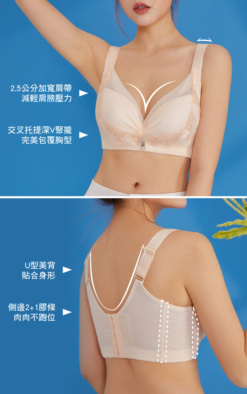 交叉托提深V聚攏 完美包覆胸型